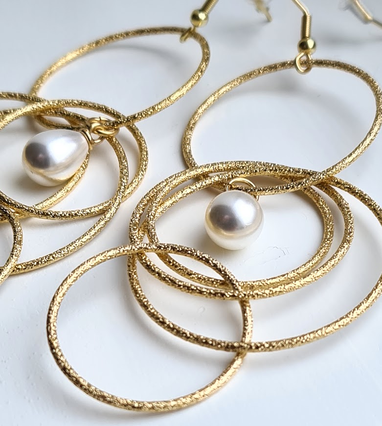 Kule øredobber med hengende hoops og perle.