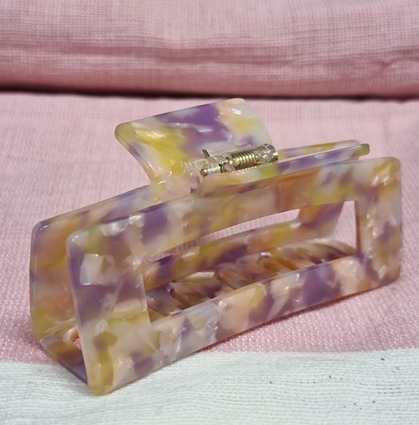 Lekker hårklype i fargene rosa , lilla og limegrønn.